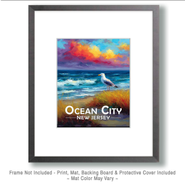 Ocean City, New Jersey Souvenir Art Print – Seagull on a Beach at Sunset