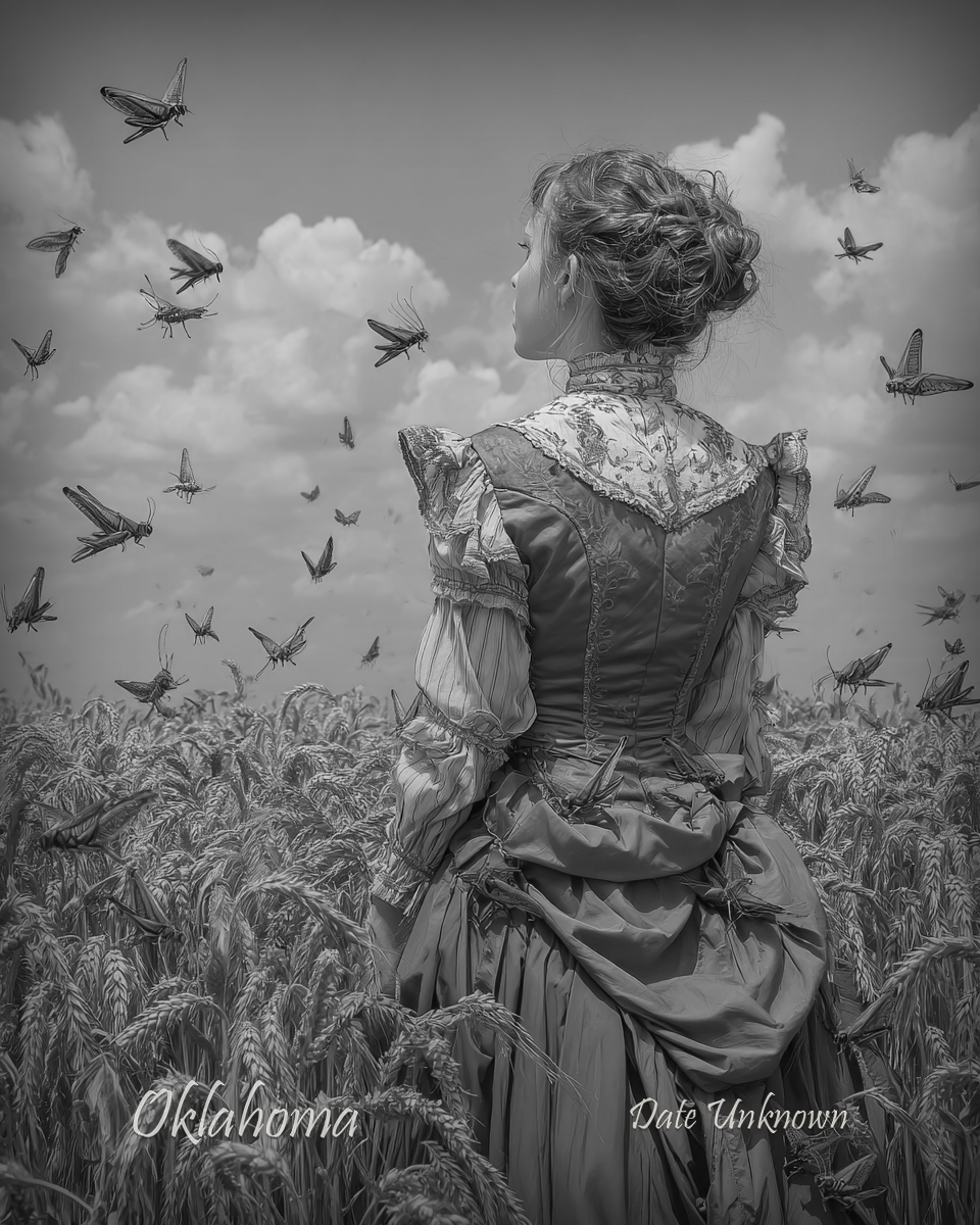 Oklahoma – Observing the Locus Swarm – Vintage Style Agriculture Cryptid Photo