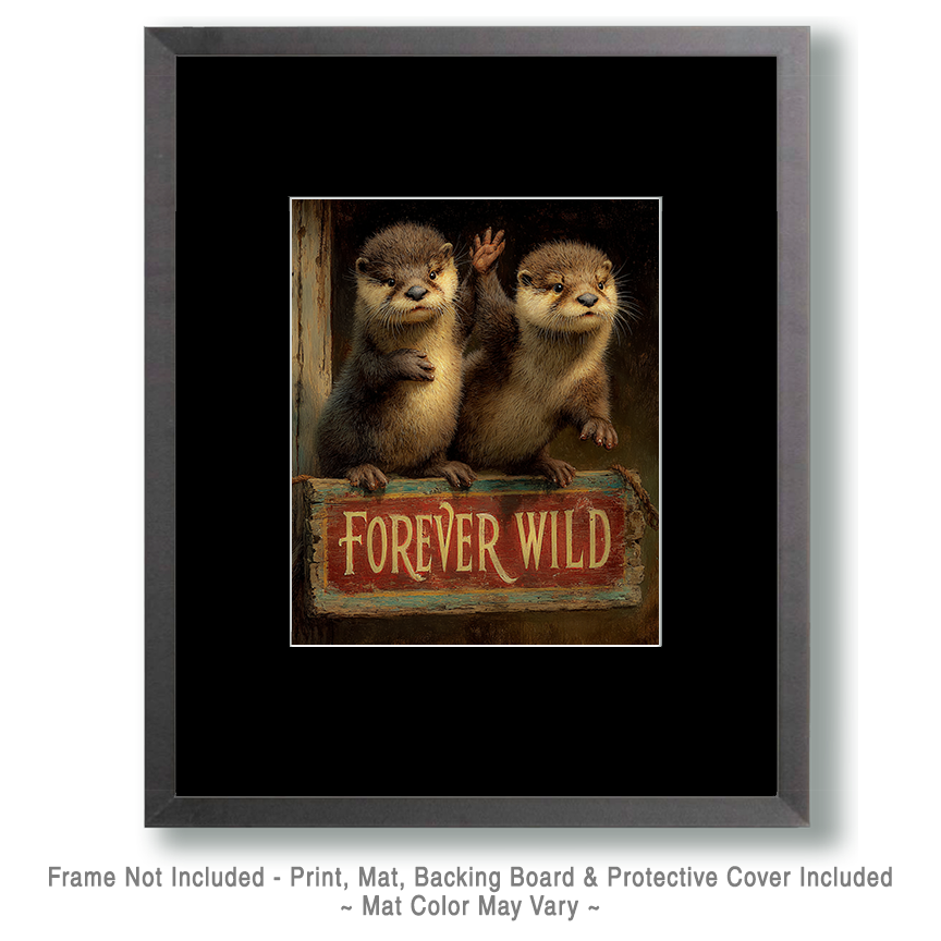 Otter Kits Wave While Standing on a Forever Wild Sign – Funny Animal Decor