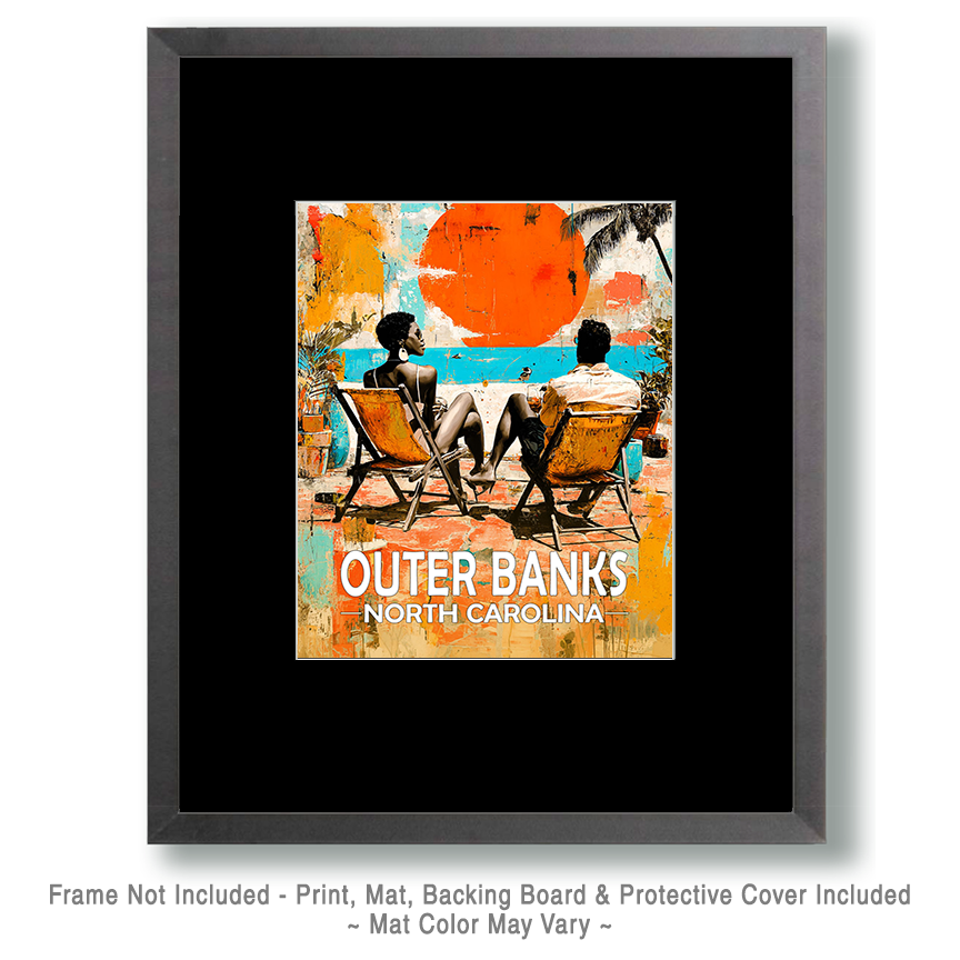 Outer Banks, North Carolina Souvenir Art Print – Couple Enjoying a Sunset on the Beach
