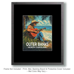 Outer Banks, North Carolina Souvenir Art Print – Old Surfer Dude Playing Guitar