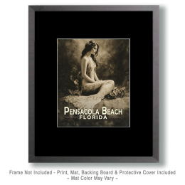 Panama City Beach Florida Souvenir Art Print – Vintage Antique Photo Style Mermaid