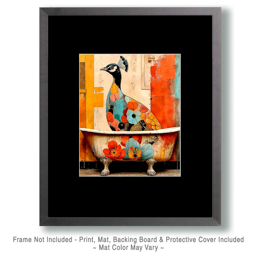 Peacock bathroom art prints featuring peacocks in bathtubs pair beautifully with trending maximalist decor, colorful bathroom decor, and eclectic home decor, making them a strong addition for retailers looking to offer bold, eye-catching pieces. These prints complement funny bathroom wall art, bird wall art, and whimsical decor, helping shoppers create vibrant, personality-filled spaces that stand out—key drivers of impulse purchases and gift sales. By merchandising peacock in bathtub prints alongside gold accents, patterned textiles, and statement decor, retailers can build visually striking, high-converting displays that increase engagement and basket size.