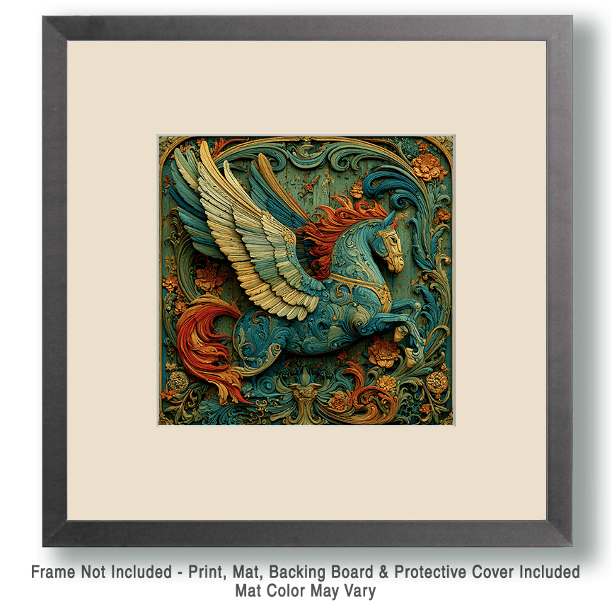 Pegasus Woodcut-Like Home Decor Wall Art
