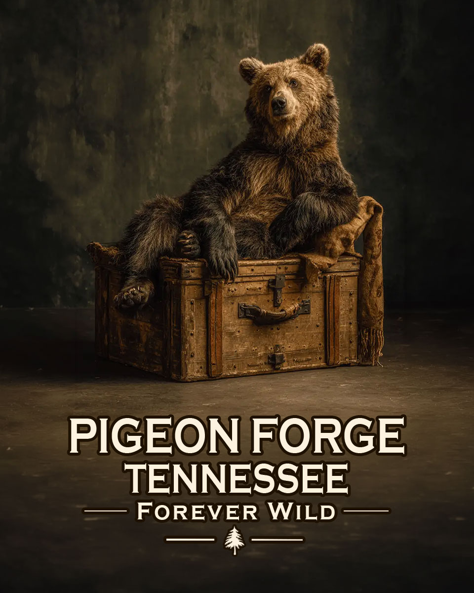 Pigeon Forge Tennessee – Forever Wild – Black Bear Bear Posing on Luggage