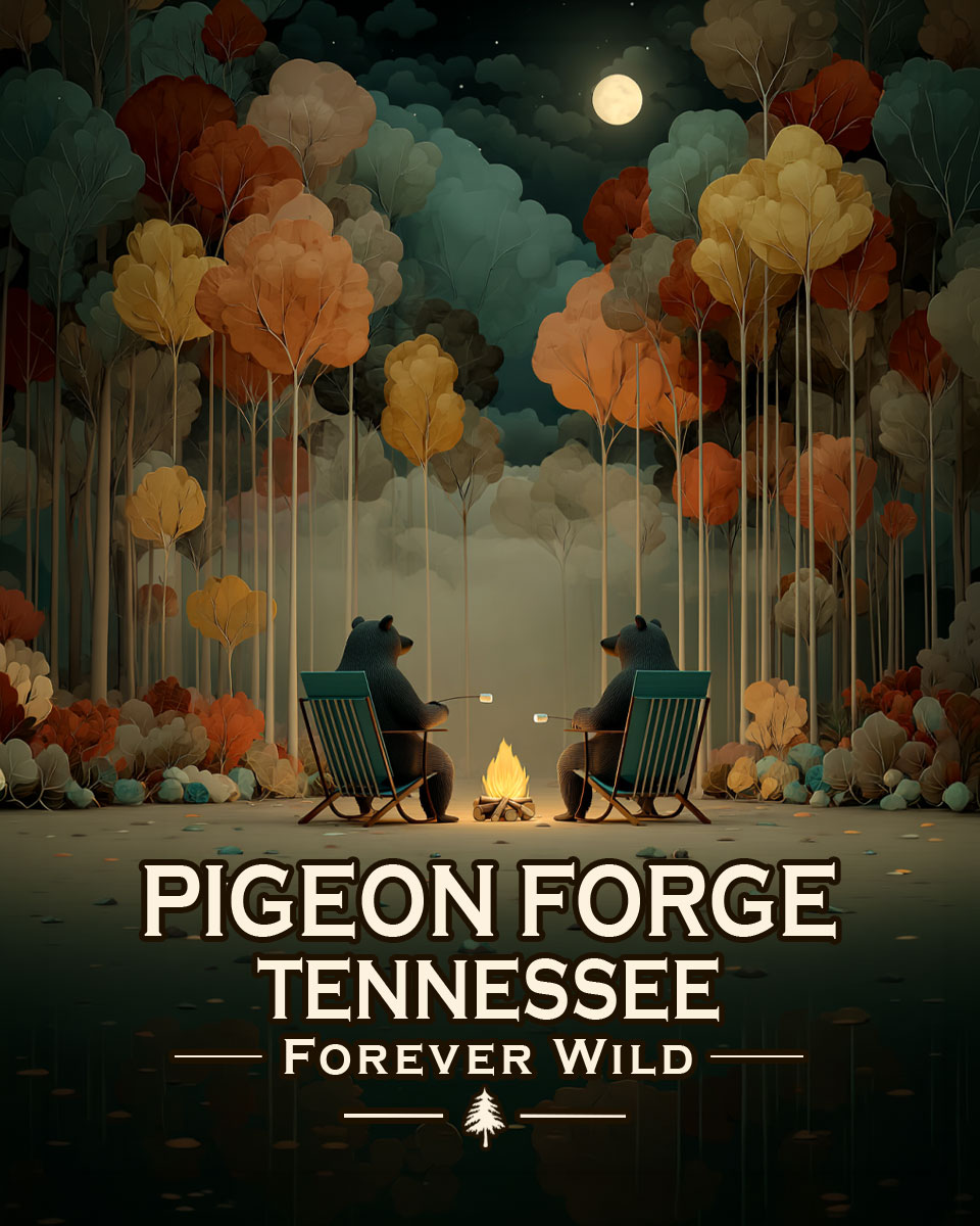Pigeon Forge Tennessee – Forever Wild – Black Bears Roasting Marshmallows