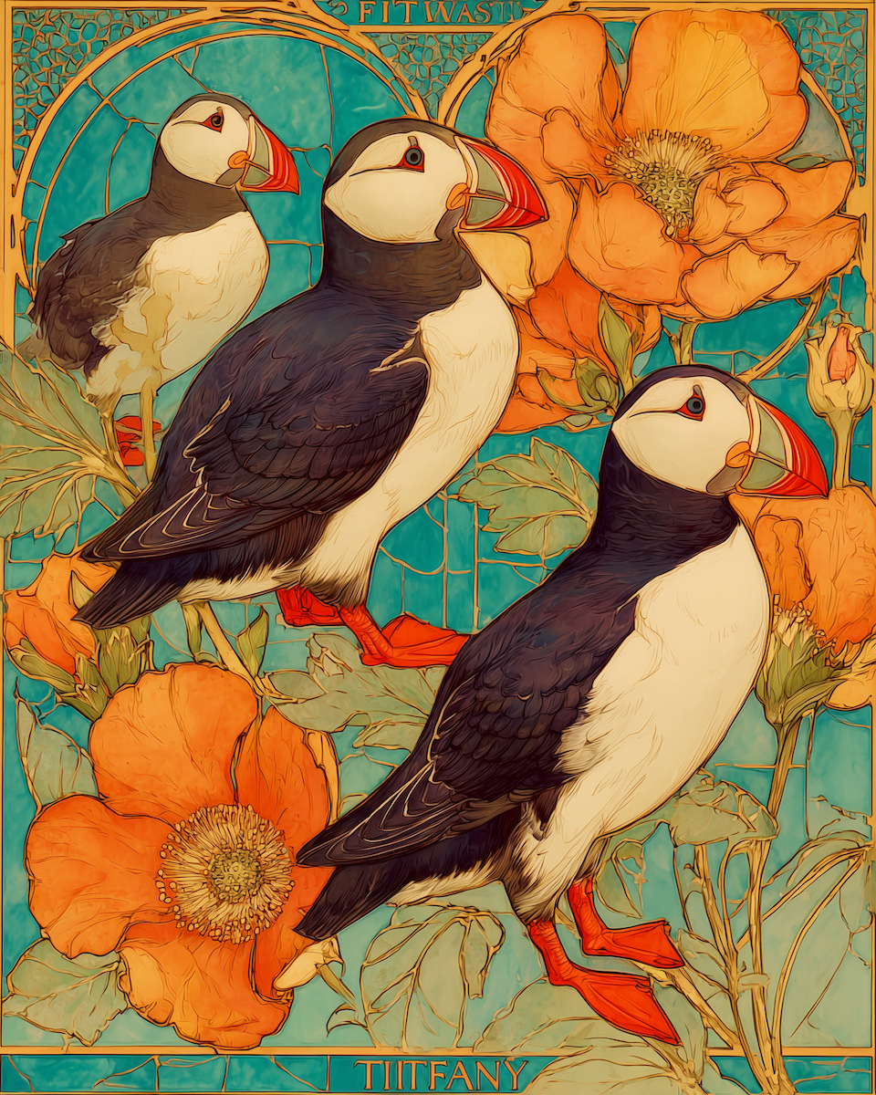Plucky Art Nouveau Puffins – Plucky Puffins Bird Theme Home Decor Wall Art