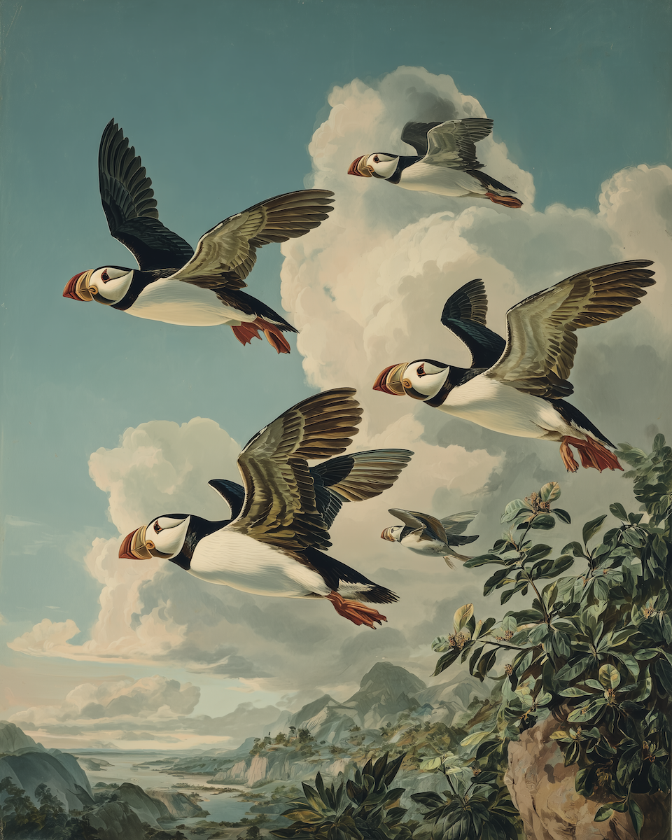 Whether you are a collector of classic wildlife studies or modern interpretive art, our collection offers a puffin style for every home. You can choose from highly detailed realistic prints that capture every feather and maritime texture, or opt for the flowing, organic lines of our Art Nouveau inspired designs. For those seeking a softer touch, our watercolor puffins feature delicate washes and ethereal tones that bring a sense of coastal calm to any room. This diverse range ensures that whether you prefer bold, stylized graphics or traditional naturalism, you’ll find a matted puffin print that perfectly suits your personal decor.