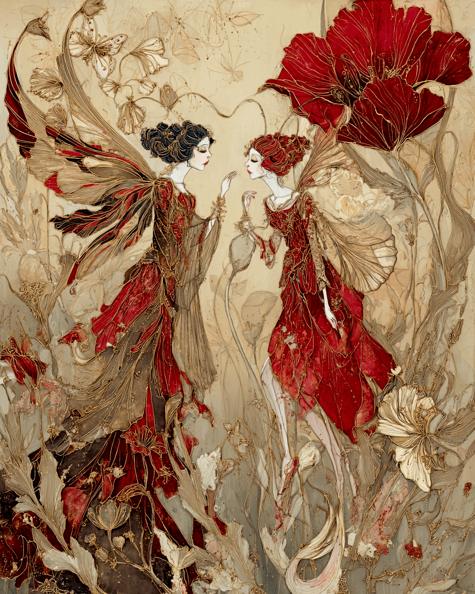 Poppy Fairy Discussion Art Print – Fairies 8″x10″ Artwork
