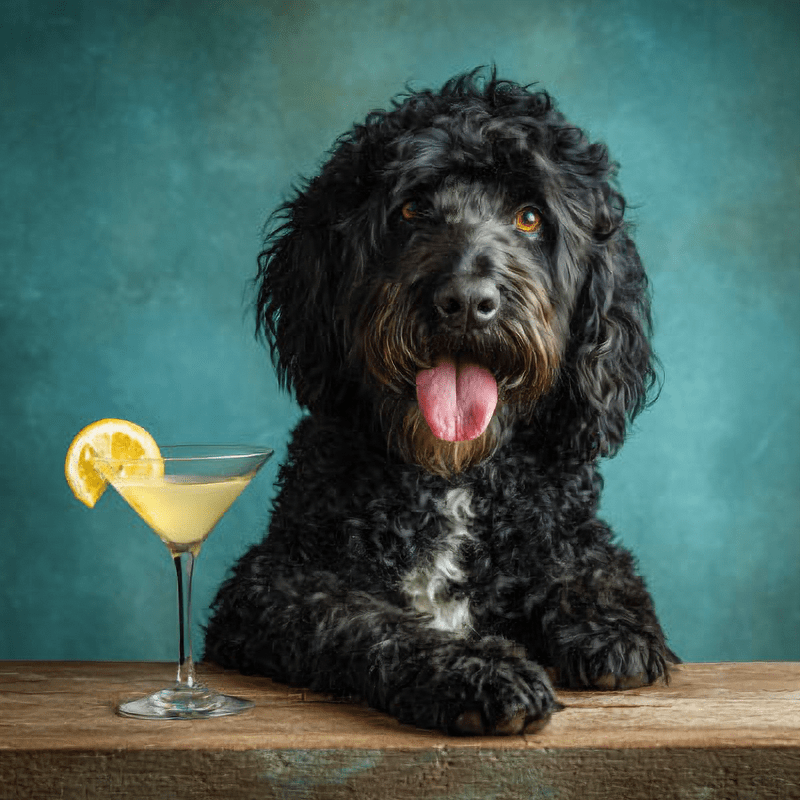 Portie Having a Martini – Portuguese Water Dog Home Decor Wall Art