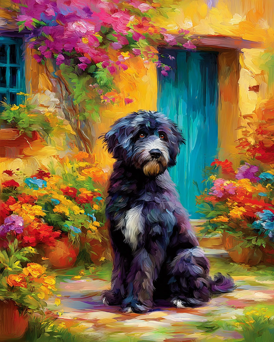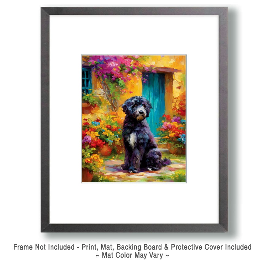 Portie in the Garden – Portuguese Water Dog Home Decor Wall Art