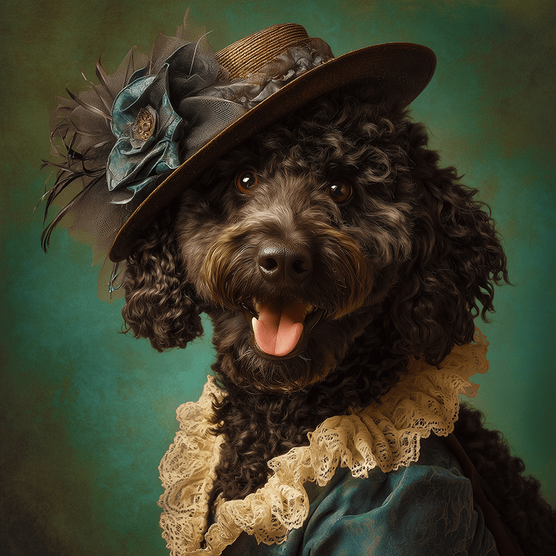 Portie Lady Portrait – Portuguese Water Dog Art Print – 8″x8″ Artwork for 12″x12″ Frame