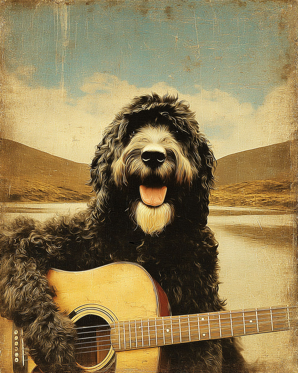 Portie Playing Guitar – Portuguese Water Dog Home Decor Wall Art