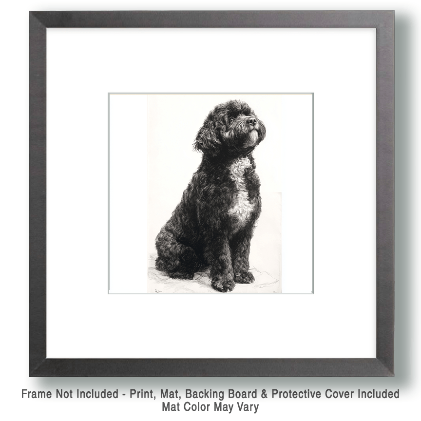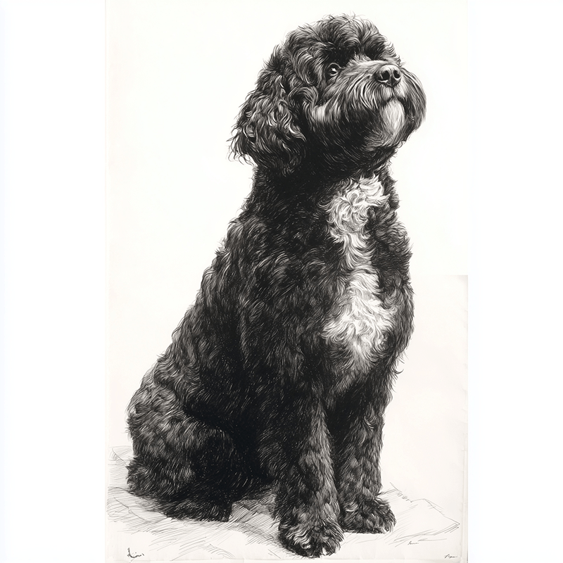 Art prints of Portuguese Water Dogs have grown in popularity thanks to the breed’s distinctive curly coat, expressive face, and energetic, loyal personality.