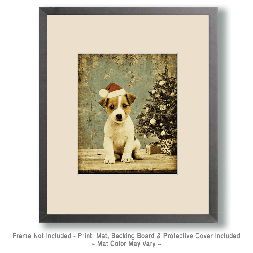Puppy in Santa Hat Christmas Home Decor Wall Art