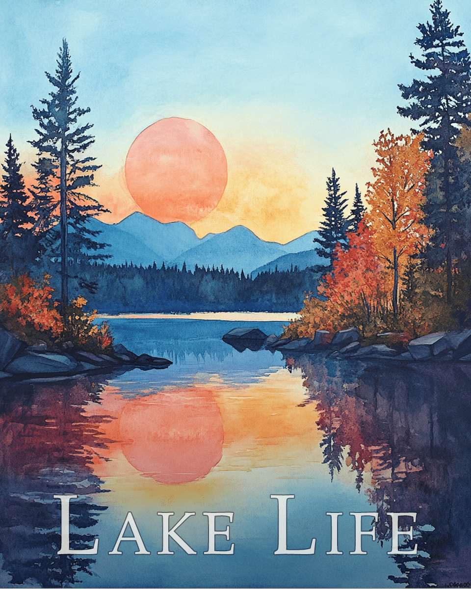 Retro Lake View – Lake Life Art Print – 8″x10″ Artwork