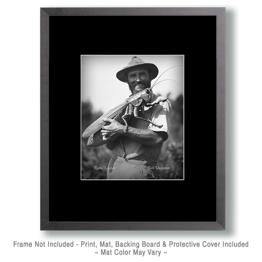 Rural Kansas – Holding Giant Grasshopper – Vintage Style Agriculture Cryptid Photo