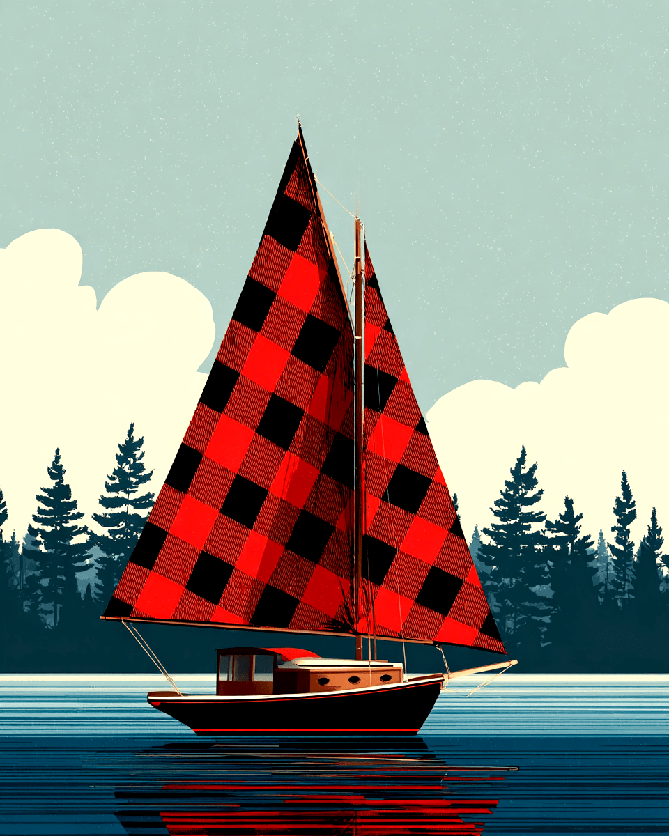 Sailboat with Buffalo Plaid Sails – Coastal Home Decor Wall Art
