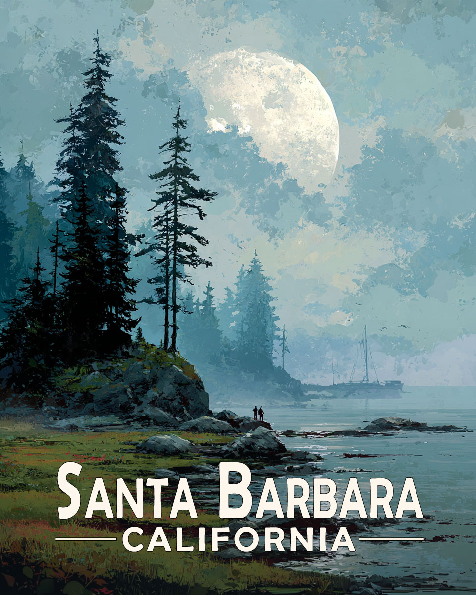 Santa Barbara California Souvenir Art Print – Full Moon Rising
