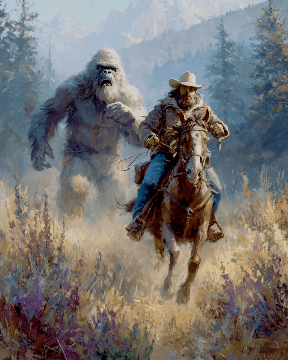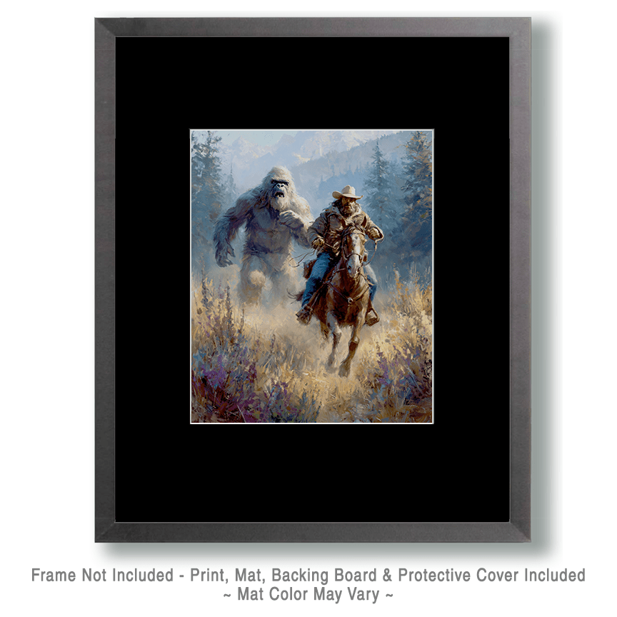 Sasquatch Chases Cowboy – Bigfoot Home Decor Wall Art