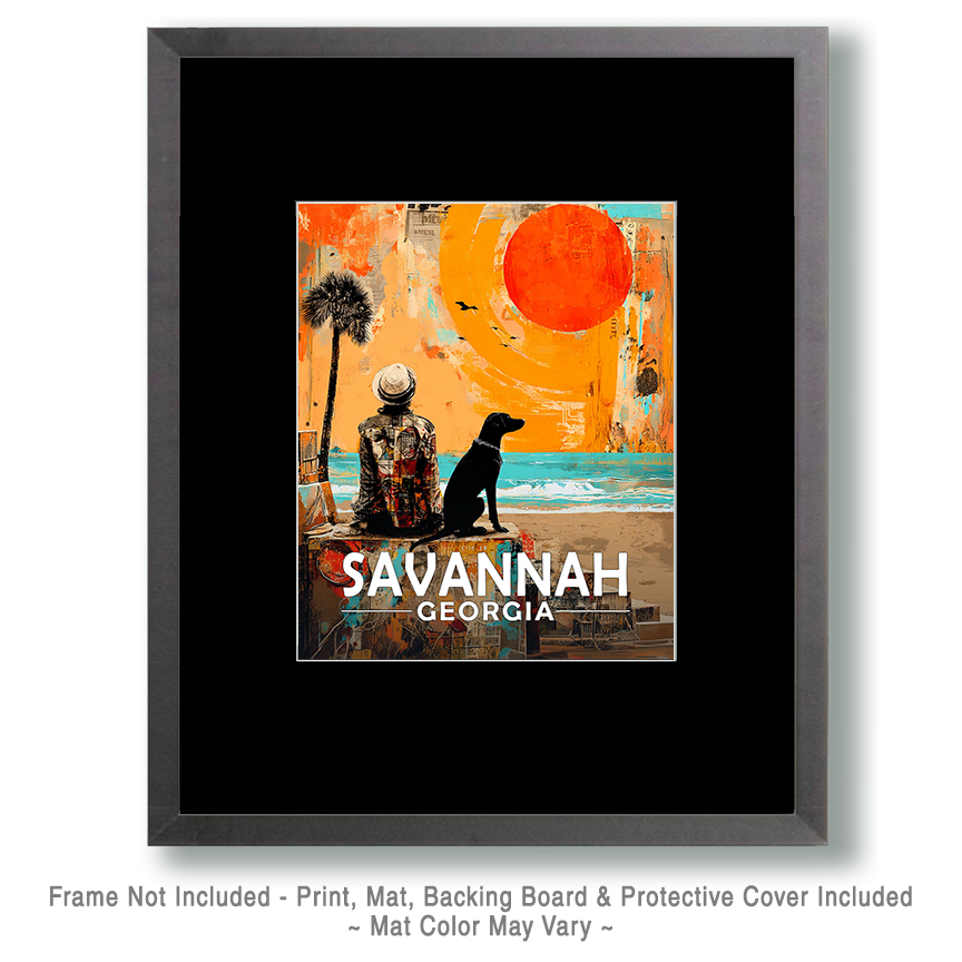 Savannah, Georgia Souvenir Art Print – Man and Dog Enjoy the Sunrise on the Beach