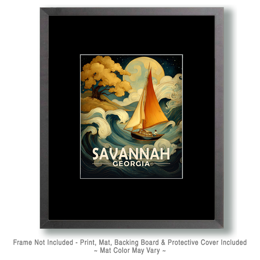 Savannah, Georgia Souvenir Art Print – Antique Vintage Style Sea Turtle