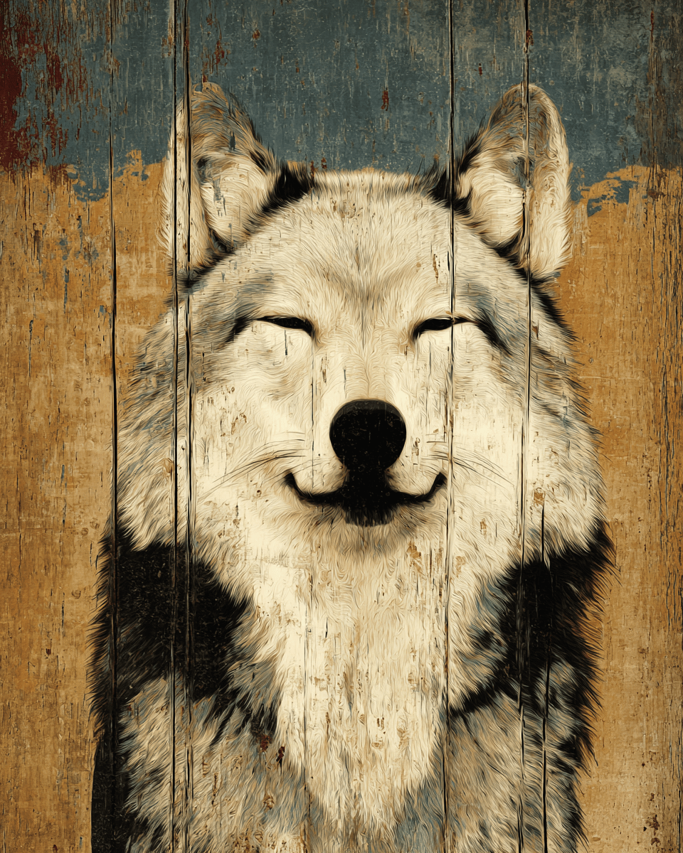 Smiling Wolf Vintage Style Wildlife Home Decor Wall Art