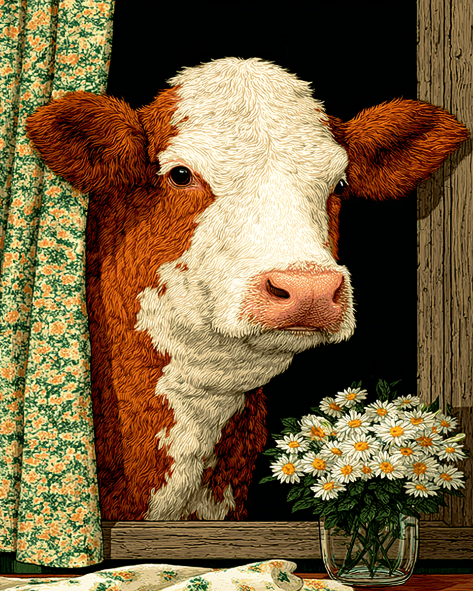 Southwest Style – Cow Poking His Head In – Artwork for Bedrooms