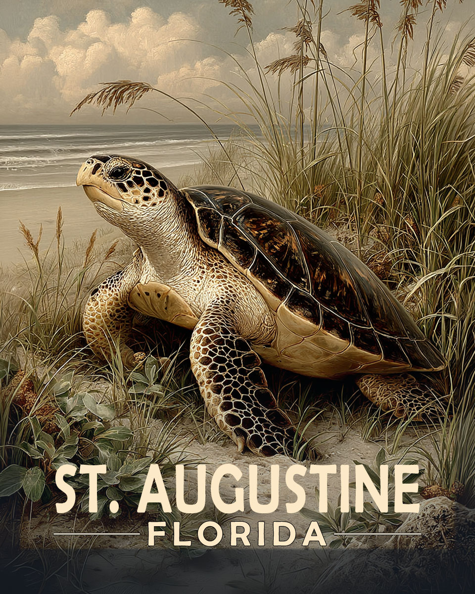 St Augustine Florida Souvenir Art Print – Antique Vintage Style Sea Turtle