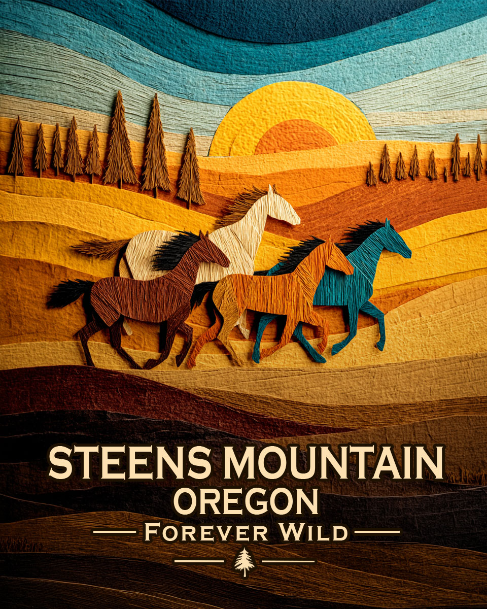 Steens Mountain Oregon – Forever Wild Horse Scene Souvenir Art Print
