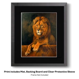 All prints have an acid-free matte with a cardboard backing board and are packaged in a clear protective bag.