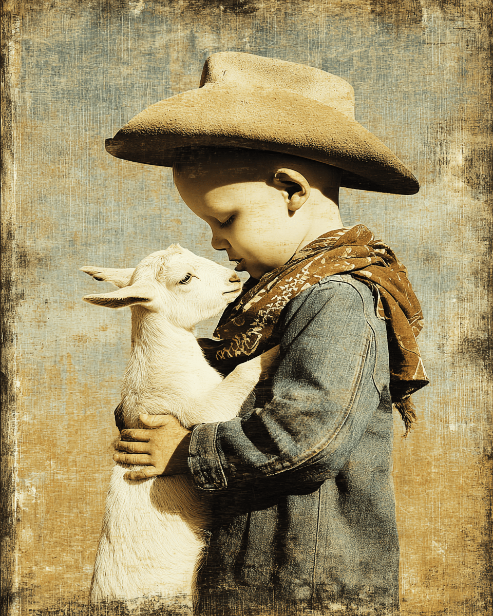 SW Nouveau Baby Cowboy and Lamb Friend – Kids of the American Southwest Home Decor Wall Art