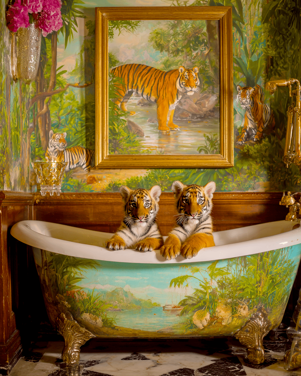 Tiger Cubs Having a Bath Wholesale Bathroom Decor Wall Art