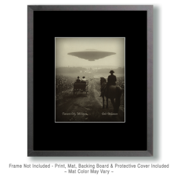 Traverse City, Michigan – Alien Flying Saucer Over Town – Vintage Style Agriculture Cryptid Photo