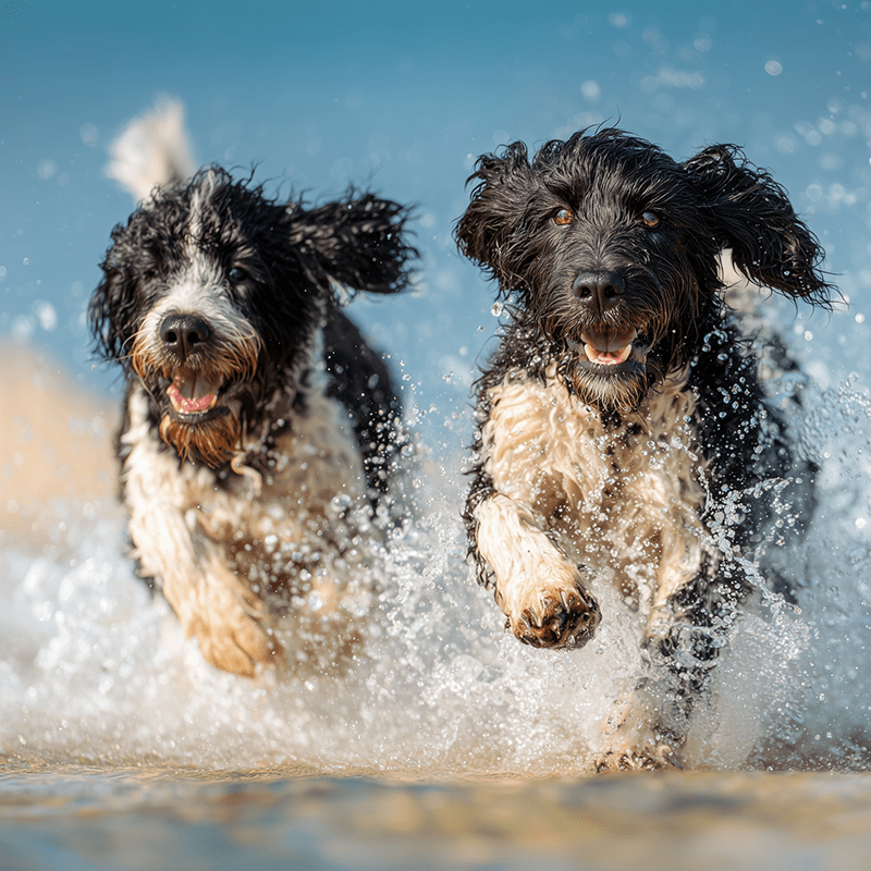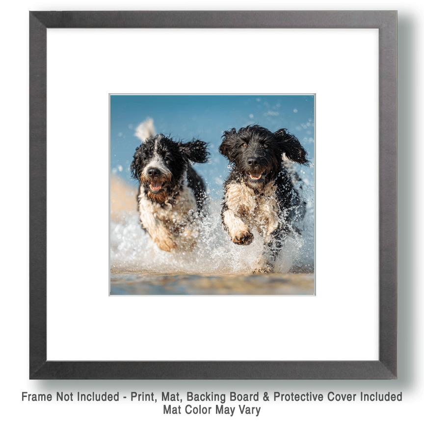 Two Porties Playing – Portuguese Water Dog Home Decor Wall Art