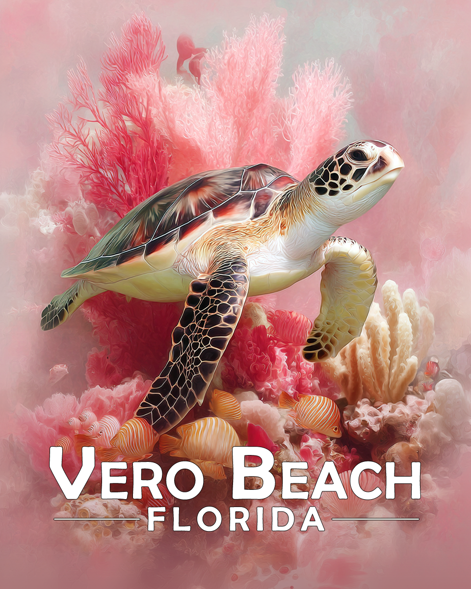 Vera Beach Florida Souvenir Art Print – Pink Sea Turtle