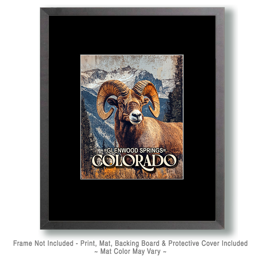 Vintage Bighorn Sheep Ram – Glenwood Springs Souvenir Art Print