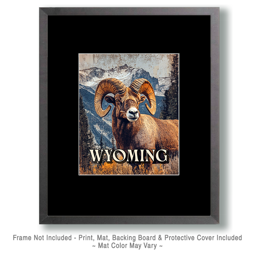 Vintage Bighorn Sheep Ram – Wyoming Souvenir Art Print