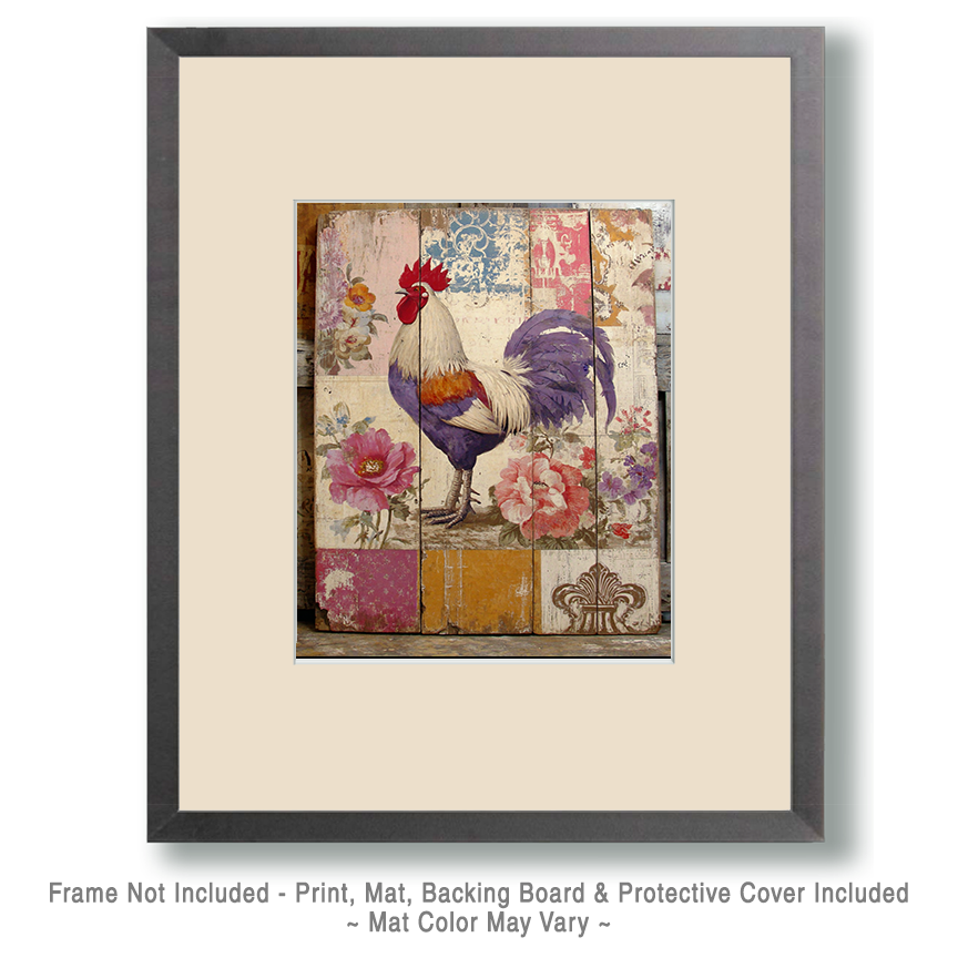 Vintage Chicken Painting on Old Door Farm Life 8″x10″ Artwork for 11″x14″ Frame