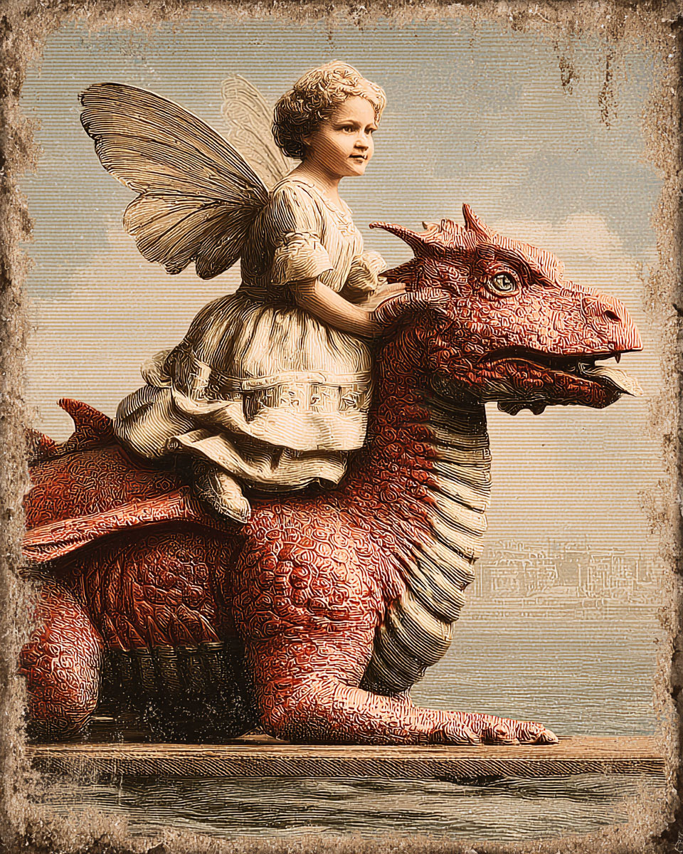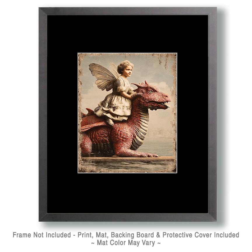 Vintage Fairy Riding Dragon – Fairy Art Print