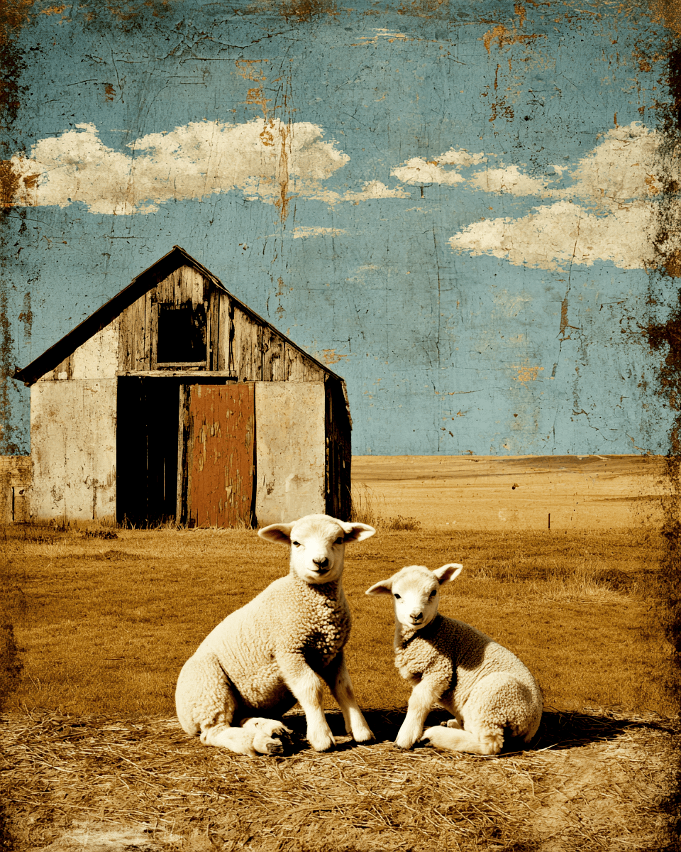 Vintage Style Pair of Lambs Farmhouse Home Decor Wall Art