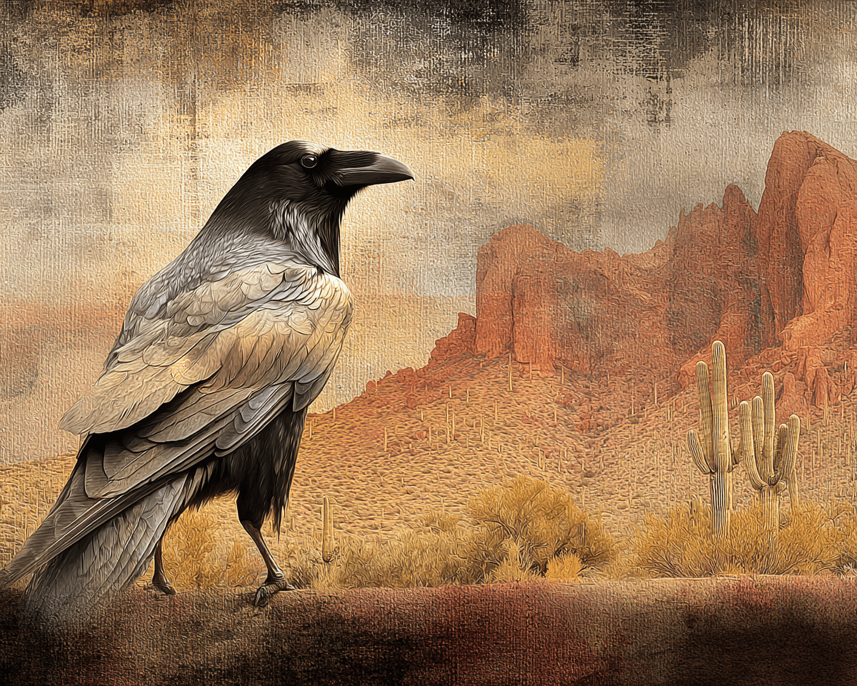 Vintage Sonoran Desert Raven Southwest Home Decor Wall Art