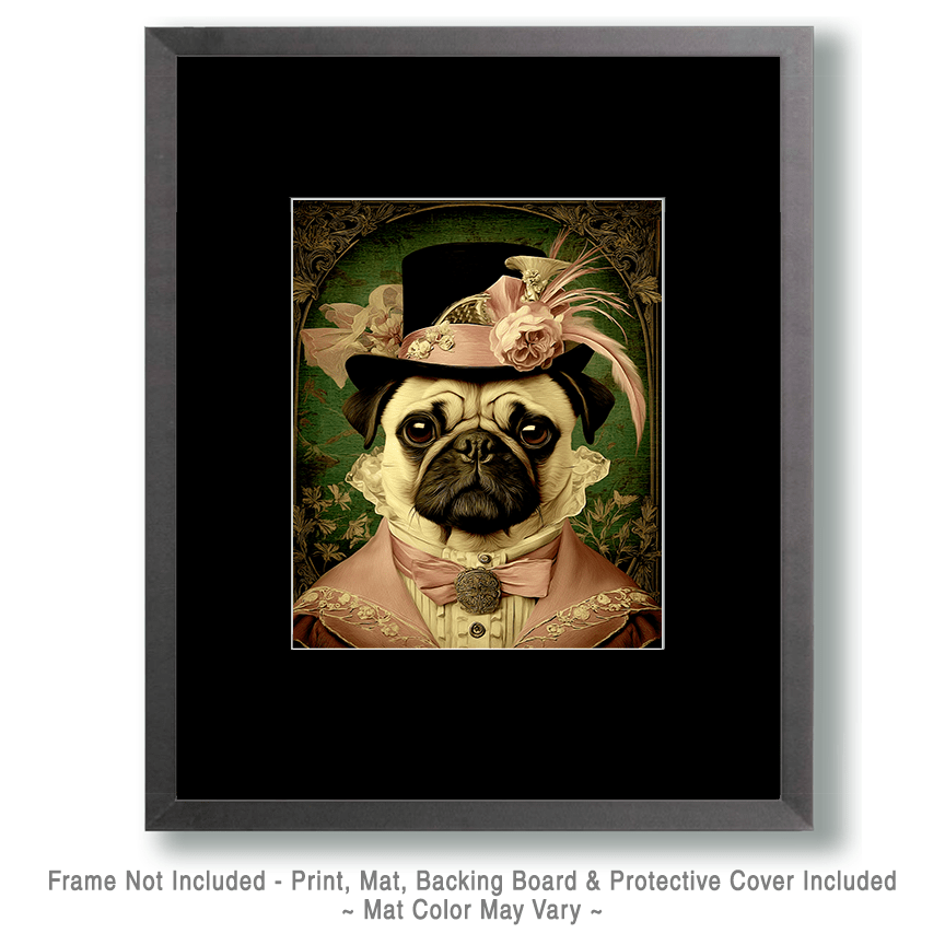 Vintage Victorian Pug Lady Dog Themed Home Decor Wall Art