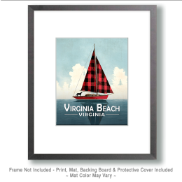 Virginia Beach, Virginia Souvenir Art Print – Buffalo Plaid Sailboat with Black Dog