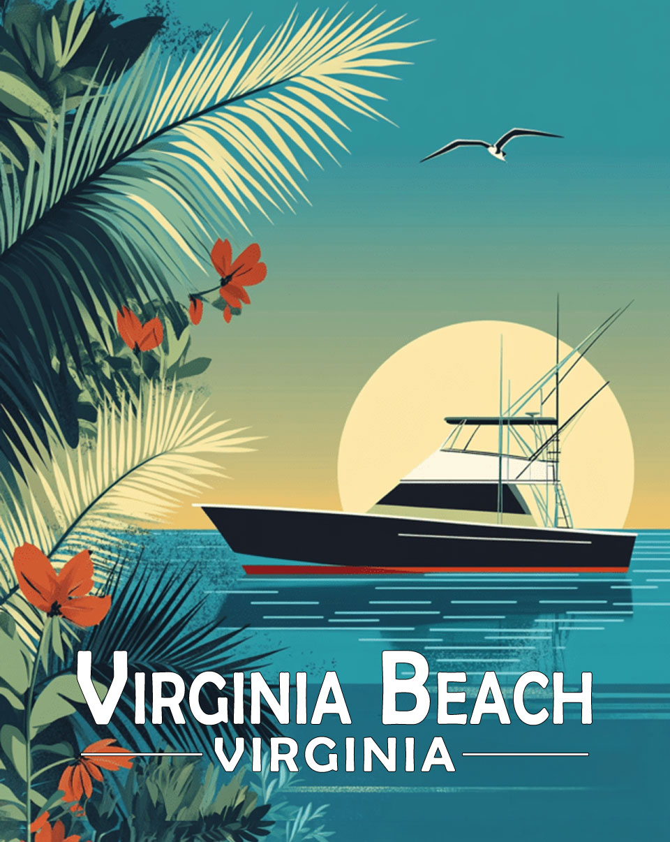 Virginia Beach, Virginia Souvenir Art Print – Yacht at Sunrise