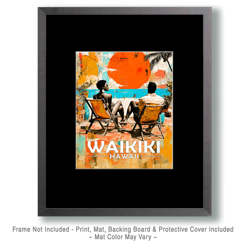 Waikiki, Hawaii Souvenir Art Print – Couple Enjoying a Sunset on the Beach