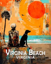 Waikiki, Hawaii Souvenir Art Print – Man and Dog Enjoy the Sunrise on the Beach