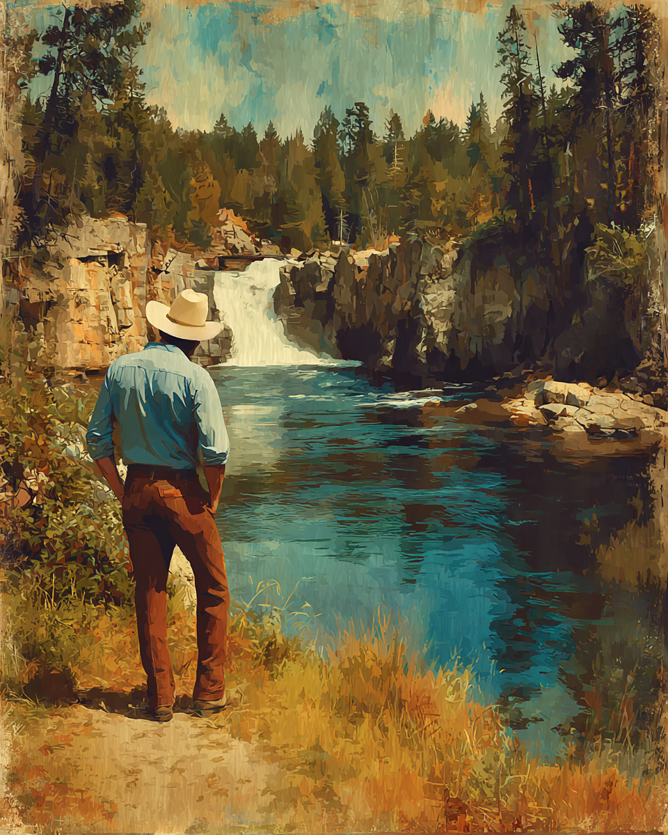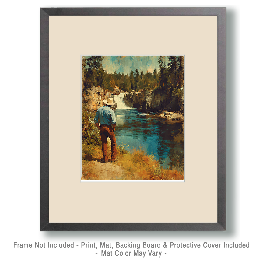 Cowboy Enjoying Waterfall View – Western Wall Art