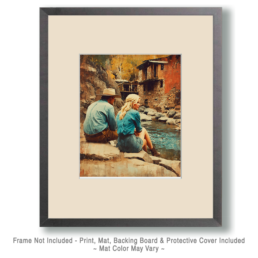 Western Cowboy Cowgirl Art – Sitting by the Rio Hondo Mill