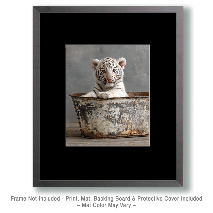White Tiger Cub in Old Tub – Whimsical Bathroom Decor